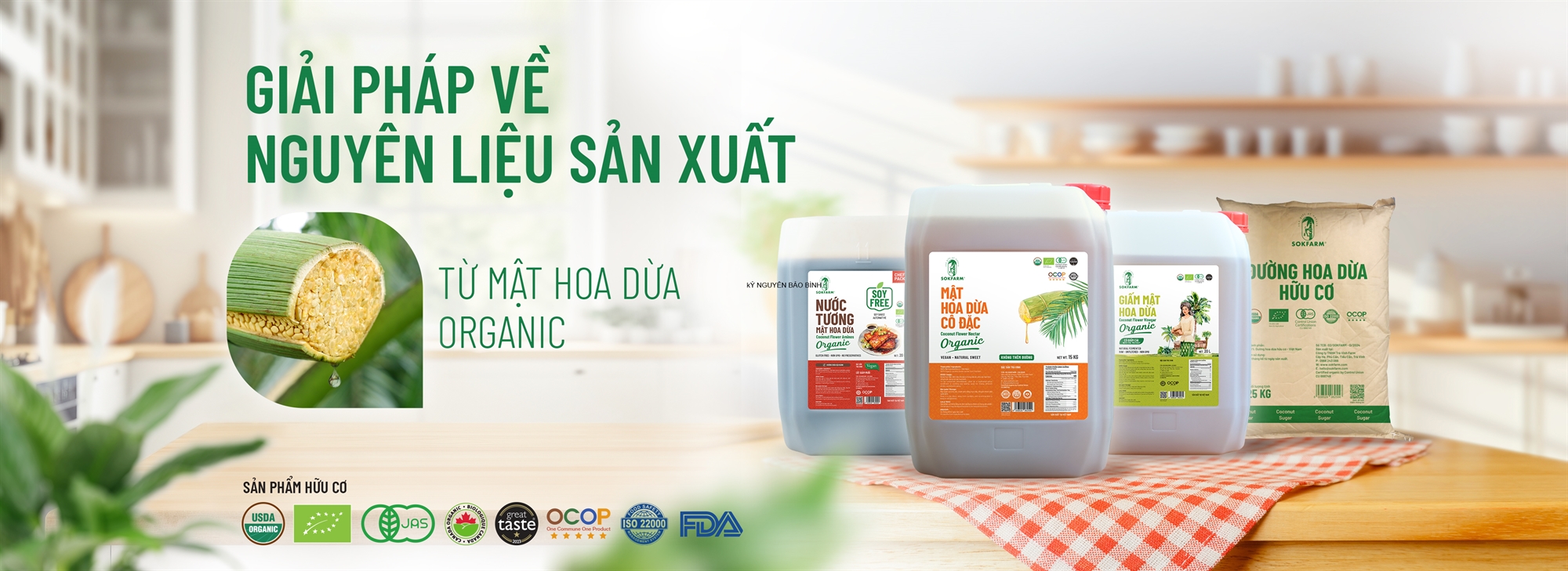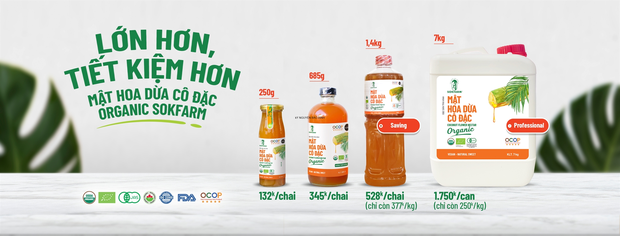 - Ý tưởng sản xuất các sản phẩm từ mật hoa dừa thương hiệu Sokfarm ra đời từ đầu năm 2018, khi giá dừa khô tại tỉnh Trà Vinh rớt giá thê thảm, có thời điểm 1200 trái dừa nhưng người nông dân chỉ có thu nhập được 2 triệu VNĐ.